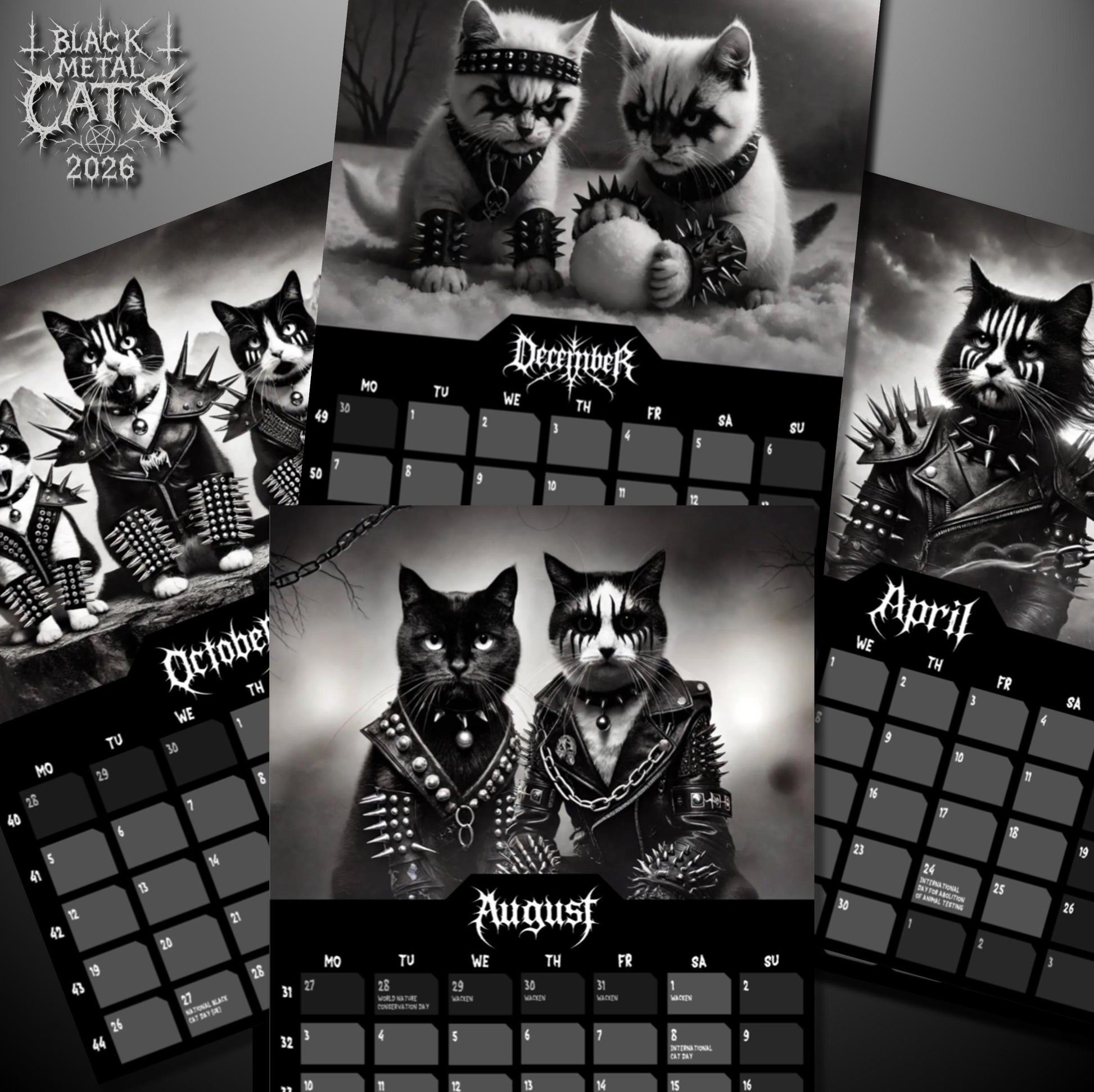 📅Each month showcases a new feline friend, embodying the true spirit of black metal. Whether you're a devoted metalhead, a cat enthusiast, or simply someone who revels in the darker side of life, this calendar is your gateway to a year of black meowtal vibes.